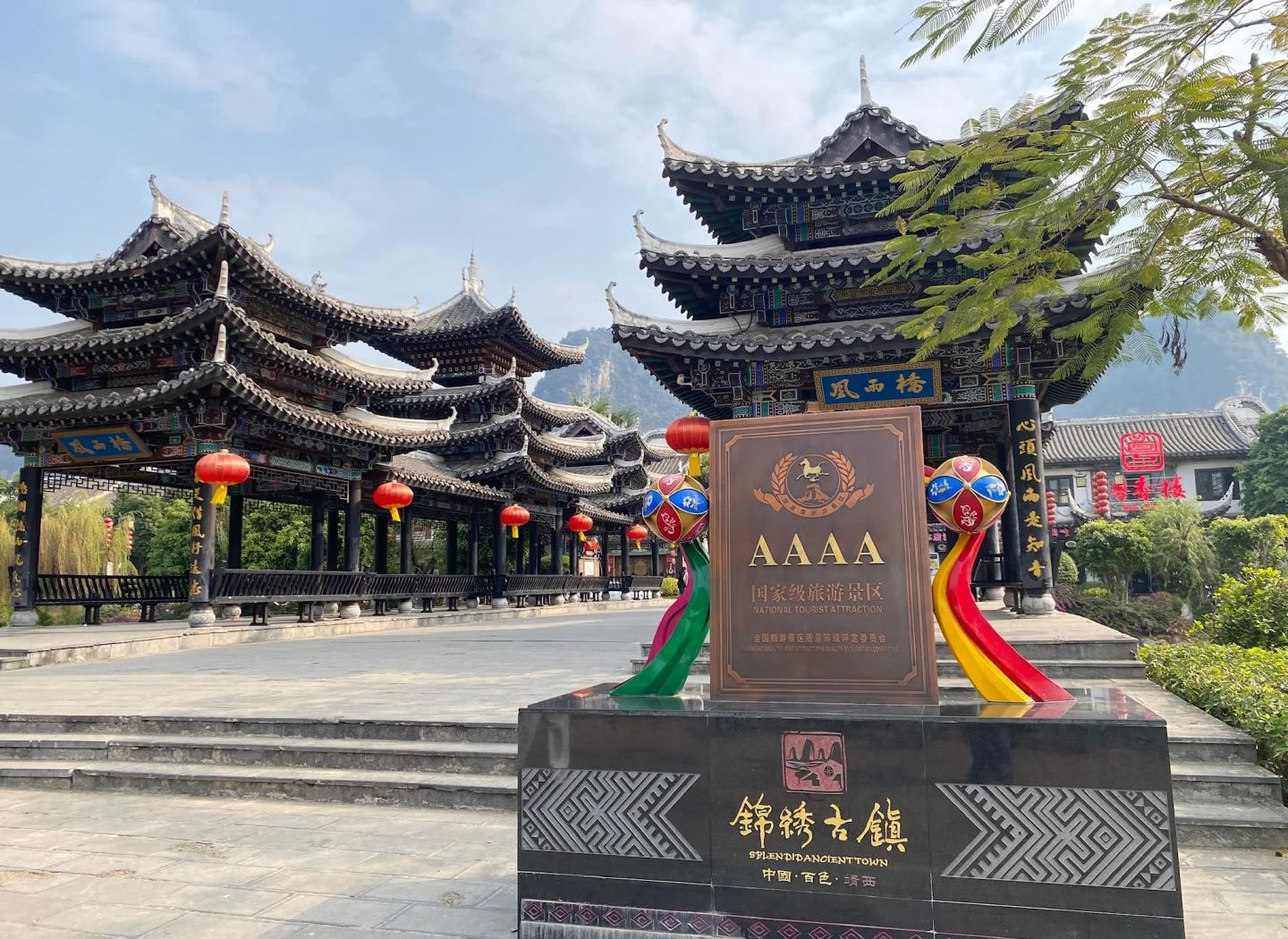 錦繡古鎮(zhèn),位于廣西壯族自治區(qū)百色市靖西市。古鎮(zhèn)一期工程于2018年12月26日正式開(kāi)街,依托靖西山水資源和壯族文化,以復(fù)興城市文脈為主線,打造壯族文化傳承載體和旅游集散中心。項(xiàng)目涵蓋文化體驗(yàn)、休閑娛樂(lè)、餐飲住宿等功能,建筑融入燈籠、銅鼓等壯族元素,具有濃厚民俗特色。古鎮(zhèn)建筑融合壯族民俗元素,如雕梁畫(huà)棟、銅鼓、繡球等,分為文旅商業(yè)街區(qū)、小吃燒烤區(qū)、主題客棧區(qū)等。以壯族文化、邊境文化、生態(tài)養(yǎng)生為主題,提供“吃住行游購(gòu)?qiáng)?rdquo;全方位體驗(yàn)。古鎮(zhèn)建成后素有“小桂林”之稱(chēng),描繪出小橋流水的壯鄉(xiāng)畫(huà)卷。