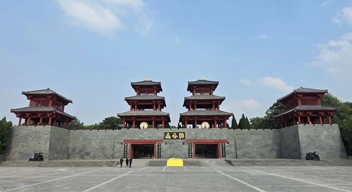 函谷關(guān)歷史文化旅游區(qū)位于河南省靈寶市,由靈寶市委、市政府投資5.89億元打造,距靈寶市區(qū)13公里,連霍高速靈寶出口不足2公里,占地面積5000畝,以函谷關(guān)軍事要塞遺址和老子著《道德經(jīng)》文化遺存為核心,形成融軍事文化、道家文化于一體的游覽體系。景區(qū)包含關(guān)樓、道德天書(shū)、太初宮等50余處景點(diǎn),現(xiàn)存秦漢風(fēng)格關(guān)樓印證其“車不方軌,馬不并轡”的險(xiǎn)要地形,2018年入選“中國(guó)黃河50景”,2021年獲評(píng)河南省中小學(xué)研學(xué)旅行實(shí)踐基地,2025年升級(jí)為國(guó)家5A級(jí)旅游景區(qū)。景區(qū)近年推出《函谷盛境》水上鐵花秀、《楚漢爭(zhēng)關(guān)》《大秦烽云》實(shí)景演出及《問(wèn)道函谷》夜游項(xiàng)目,開(kāi)展“紫氣東來(lái)·問(wèn)道函谷”文化藝術(shù)周活動(dòng)。該關(guān)始建于西周,為歷史上建制最早的雄關(guān)要塞,發(fā)生大小戰(zhàn)役200余次,其中16次影響中國(guó)歷史進(jìn)程。周敬王四年(公元前516年)老子于此撰寫(xiě)《道德經(jīng)》,天寶元年(742年)因“函谷靈符”事件改桃林縣為靈寶。現(xiàn)存紫銅老子圣像高33.3米,太極圣湖水域面積達(dá)1400畝。