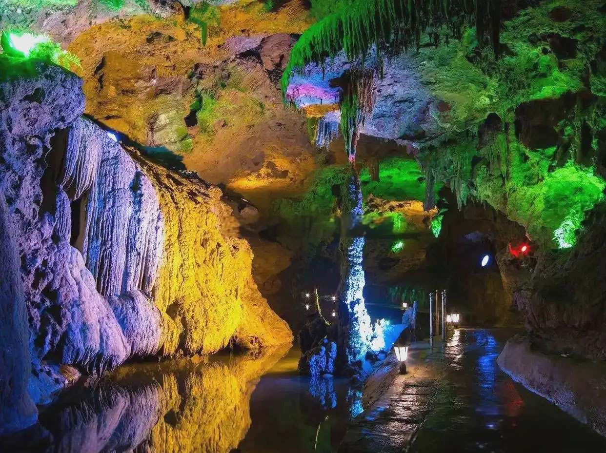 - 核心特色:四層溶洞體系、全長6公里的地下長河(明河1.5公里+暗河4.5公里)、恒溫18-19℃的洞穴環(huán)境、高空速滑(中國第一,落差100米)、卡丁車場、土風(fēng)舞表演及篝火晚會,融合探險、休閑、文化體驗于一體。