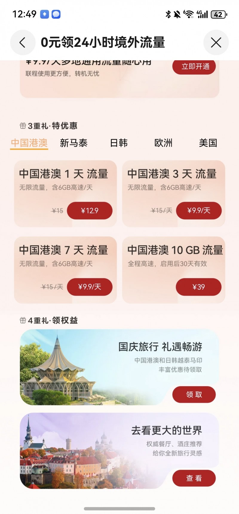 首先,天際通第一重禮·享免費——0元領24小時境外流量。從9月17日至10月31日,華為手機用戶登錄天際通APP首頁參與活動,即可享受0元領取24小時境外流量,覆蓋華人出行全球主流目的地,流量領取活動貫穿整個10月,用戶可在2025年9月28日至2026年3月31日啟用,滿足華為手機用戶境外出行上網需求,讓用戶零成本體驗天際通的高品質境外上網服務。