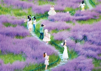 廣西壯族自治區(qū)南寧園博園景區(qū),粉黛亂子草盛情綻放,吸引了許多游客前來打卡拍照。