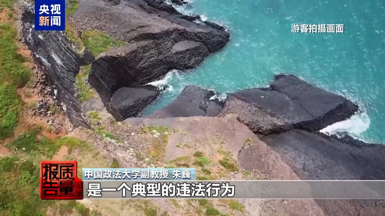 中國地質大學(北京)地球科學與資源學院教授 張緒教:游客上島以后,他們攀爬到柱狀節(jié)理上邊,對柱狀玄武巖造成破壞,這種物理破壞是不可逆的。