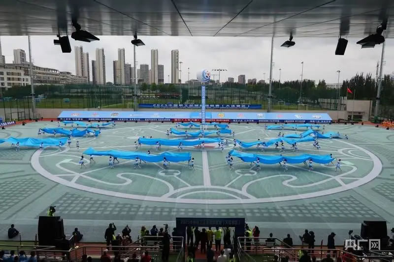 揭幕戰(zhàn)開始前,大連職工傾情演繹的主題表演《大海啊故鄉(xiāng)》,成為表演節(jié)目中的一抹亮色,舞臺上藍(lán)色海浪涌動(dòng),職工青春的活力與濱城的海韻完美交融,將開放包容的城市氣質(zhì)化作澎湃的視覺交響,藝術(shù)化呈現(xiàn)了大連職工足球發(fā)展的歷史。健排舞《我愿全速奔向你》,原創(chuàng)舞蹈《大連雄風(fēng)》,歌舞表演《奔跑》等節(jié)目充分展示了大連城市發(fā)展活力和開放文明新形象,展現(xiàn)了大連職工昂揚(yáng)向上、積極進(jìn)取的精神風(fēng)貌。伴隨著激昂的樂曲,來自大連市實(shí)驗(yàn)小學(xué)和沙河口區(qū)東北路小學(xué)兩所國內(nèi)知名足球特色學(xué)校的孩子們,帶來了精彩的顛球表演,孩子們個(gè)個(gè)精神抖擻、技藝嫻熟,把現(xiàn)場的氛圍推向高潮。
