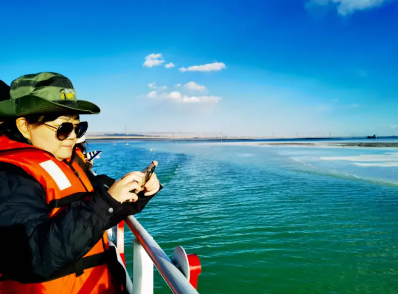 10月14日,由中共海西州委宣傳部主辦、西海都市報(bào)社承辦的“紅杞風(fēng)光別樣美 ”活動(dòng),走進(jìn)海西蒙古族藏族自治州烏蘭縣,研學(xué)團(tuán)隊(duì)來(lái)到茶卡鹽湖,乘坐游船觀光,湖面上駛來(lái)的大型運(yùn)鹽船讓外省記者及學(xué)生不由感嘆:沒(méi)想到“天空之鏡”還有另外一種獨(dú)特景致。湖面上駛來(lái)的大型運(yùn)鹽船吸引了研學(xué)團(tuán)隊(duì)成員的目光。采鹽船正在鹵水中作業(yè),發(fā)出低沉的轟鳴,空氣中彌漫著咸潤(rùn)的氣息。研學(xué)的同學(xué)通過(guò)實(shí)地觀察鹵水的蒸發(fā)、結(jié)晶過(guò)程,將課本上的地理、化學(xué)知識(shí),與這片壯麗的現(xiàn)實(shí)場(chǎng)景融會(huì)貫通。