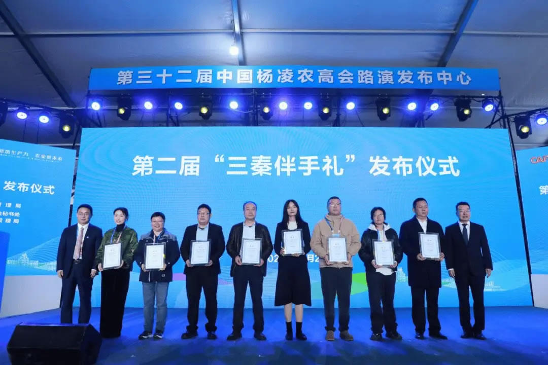第二屆50款“三秦伴手禮”優(yōu)選產(chǎn)品名單在現(xiàn)場(chǎng)發(fā)布。陜西省市場(chǎng)監(jiān)管局黨組書記、局長(zhǎng)張小平與楊凌示范區(qū)管委會(huì)副主任程津慶共同為獲獎(jiǎng)企業(yè)代表授牌。