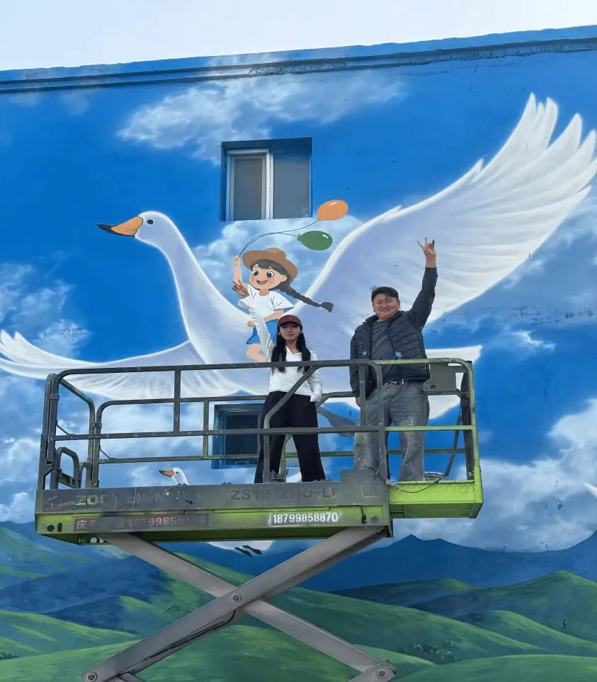10月25日,新疆庫爾勒市杜鵑河畔天鵝驛站旁,一幅高15米、寬13米的天鵝主題彩繪正式完成創(chuàng)作。墻繪師雷雪帶領團隊耗時十幾天匠心打磨,將藍天白云、河流高山與靈動天鵝的景致定格在墻體之上,為這座城市的“生態(tài)名片”再添藝術亮色。